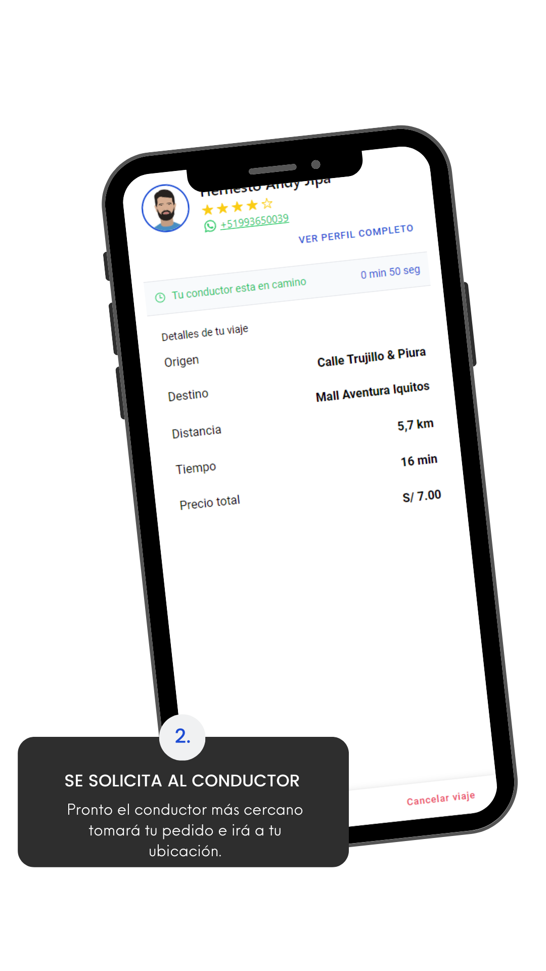 Al aceptar la tarifa del viaje, se alertará al conductor más cercano y este irá en camino a tu ubicación para iniciar el viaje.